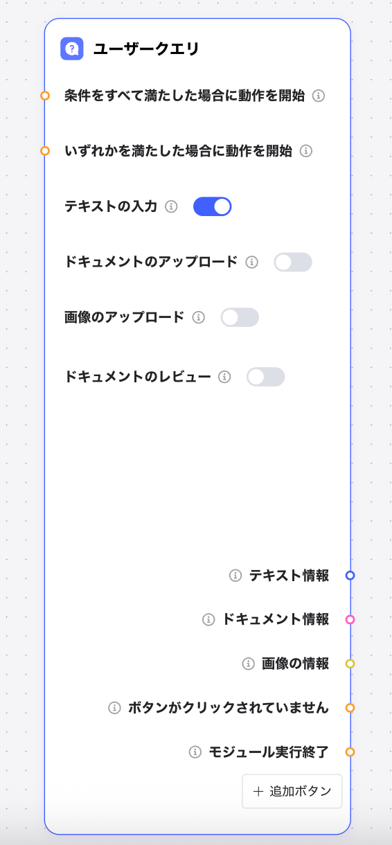 タイプ: 文字列型ユーザーが自由にテキストを入力できる機能です。入力内容は「テキスト情報」ノードを通じシステムに送信されます(デフォルトで有効)。