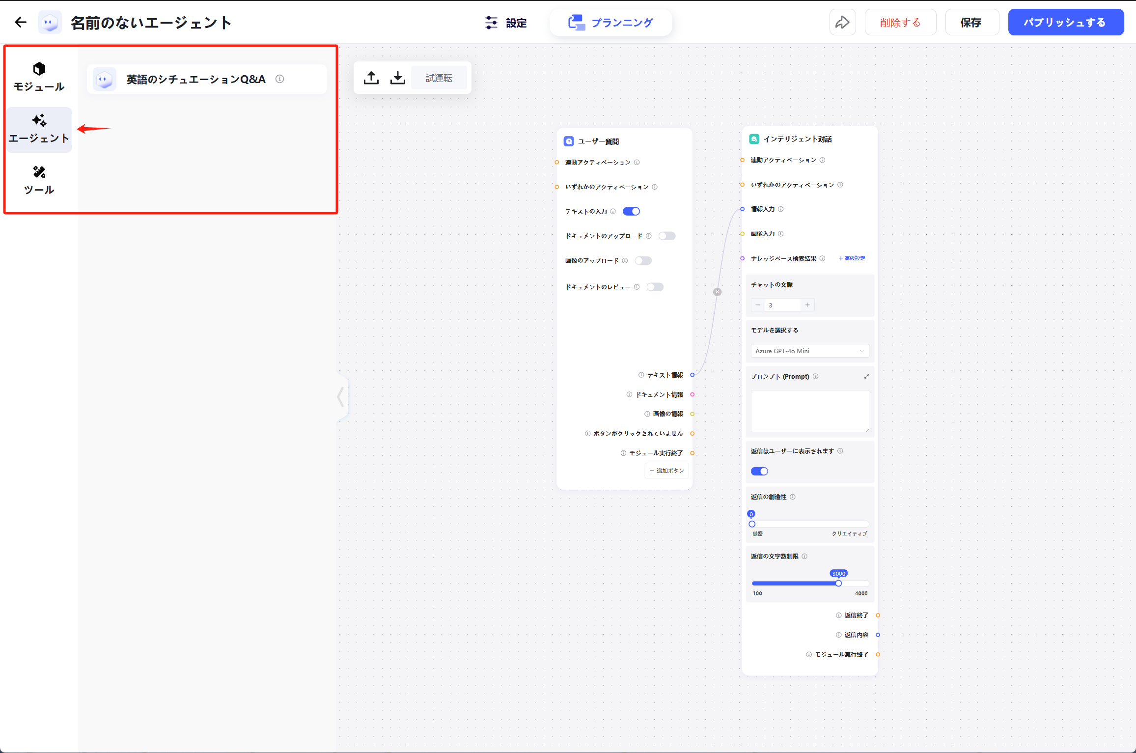 各サブエージェントには 「Agent対話終了」モジュールは1つのみ設置可能です。